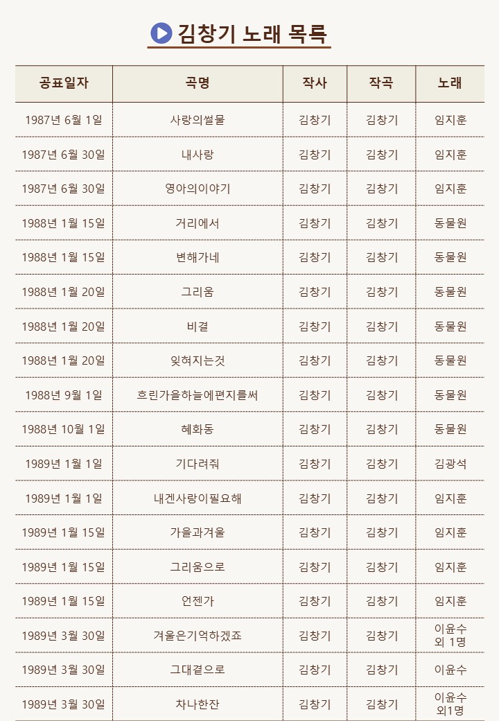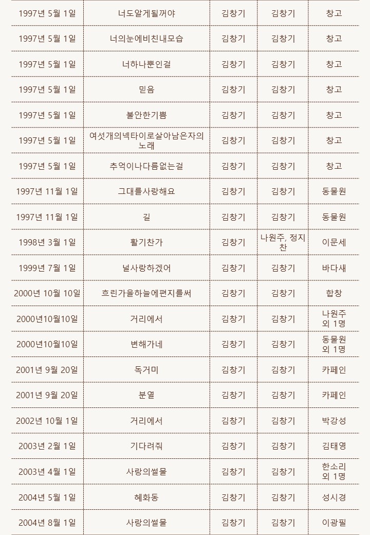 김창기 노래 목록