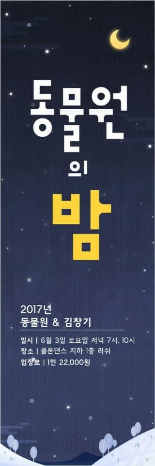 2017년 6월 3일(토) 저녁 7시,10시 강릉 클론댄스 지하 1층 Rush에서 진행한 "김창기 & 동물원 널 사랑하겠어" 공연 포스터임.