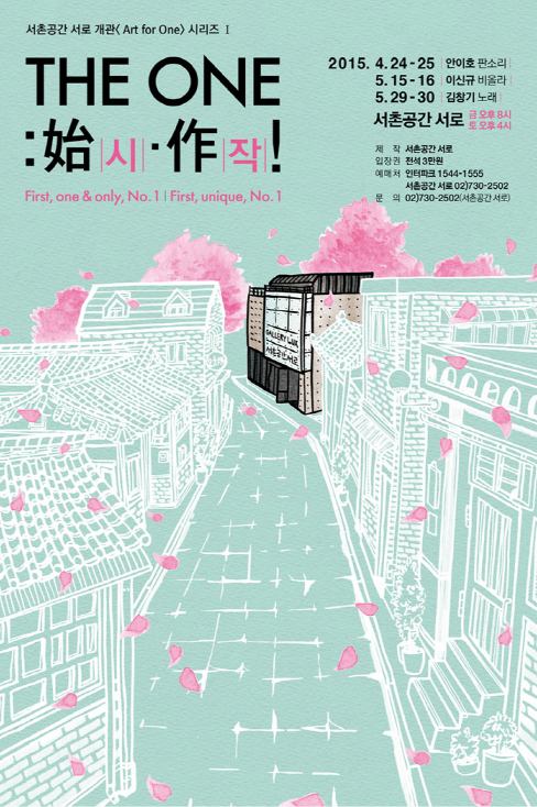 2015년 5월 29일(금)부터 5월 30일(토)까지 서촌공간 서로에서 진행한 THE ONE :始ㅣ시ㅣ·作ㅣ작ㅣ! 공연 포스터임. -5월 29일 (금) 저녁 8:00 -5월 30일 (토) 오후 4:00
